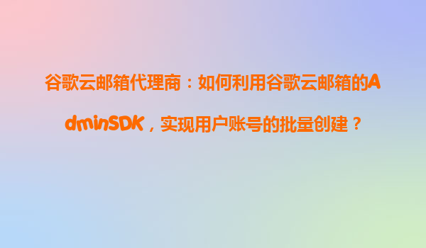 4008-020-360 谷歌云郵箱代理商:如何利用谷歌云郵箱的AdminSDK實現(xiàn)用戶賬號的批量創(chuàng)建 一、谷歌云郵箱的優(yōu)勢 谷歌云(GoogleWorkspace)作為全球領(lǐng)先的云服務(wù)提供商,其企業(yè)郵箱解決方案——谷歌云郵箱(Gmailfo...