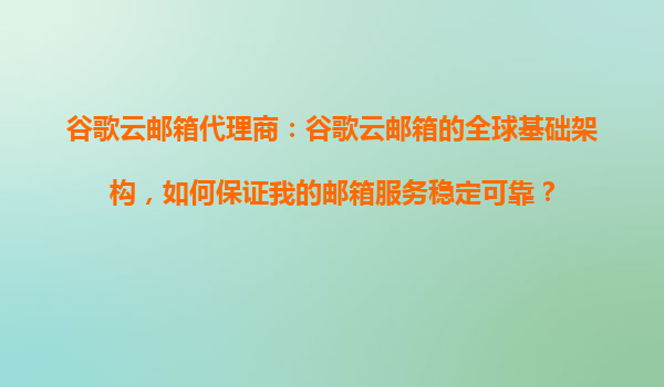 2025-10-30谷歌云郵箱代理商:谷歌云郵箱的全球基礎(chǔ)架構(gòu)如何保障服務(wù)穩(wěn)定可靠 引言 在數(shù)字化時代,企業(yè)郵箱已成為商業(yè)溝通的核心工具。谷歌云郵箱(GoogleWorkspace)憑借其卓越的全球基礎(chǔ)架構(gòu)和穩(wěn)定...