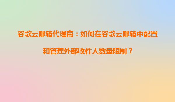 2025-10-30谷歌云郵箱代理商:如何在谷歌云郵箱中配置和管理外部收件人數(shù)量限制? 一、引言 谷歌云郵箱(GoogleWorkspace)作為企業(yè)級郵件服務(wù)平臺,提供了高效、安全的郵件管理功能。其中,外部收件人數(shù)量限制是企業(yè)IT管理...