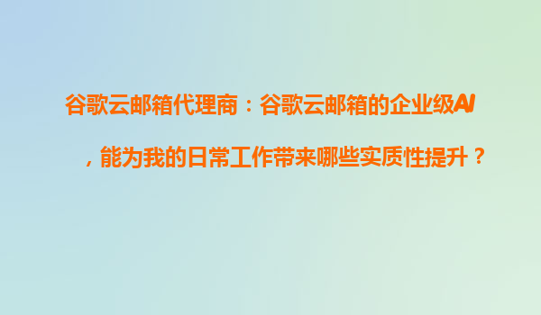 2025-10-30谷歌云郵箱代理商:谷歌云郵箱的企業(yè)級AI,能為我的日常工作帶來哪些實質(zhì)性提升? 一、谷歌云郵箱的企業(yè)級AI核心優(yōu)勢 谷歌云郵箱(GoogleWorkspace)集成業(yè)界領(lǐng)先的AI技術(shù),結(jié)合云計算、機器學習和自...