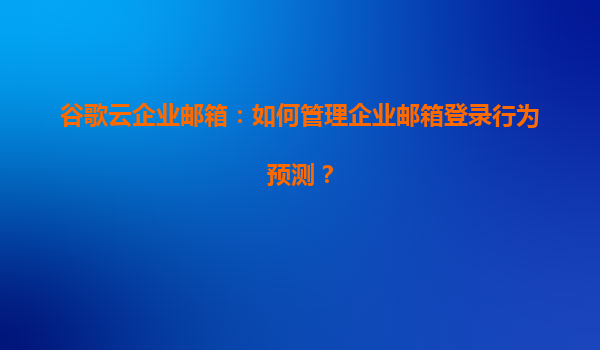 2025-04-20谷歌云企業(yè)郵箱:如何高效管理企業(yè)郵箱登錄行為預測 隨著企業(yè)數(shù)字化轉(zhuǎn)型的加速,郵箱作為核心通信工具的安全性愈發(fā)重要。谷歌云企業(yè)郵箱(GoogleWorkspace)憑借其先進的技術(shù)架構(gòu)和智能化管理能力...