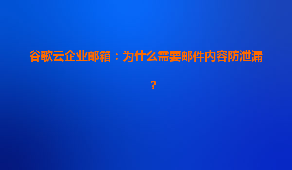 2025-04-20谷歌云企業(yè)郵箱:為什么需要郵件內(nèi)容防泄漏? 一、引言:企業(yè)郵箱的核心價值與風險 在數(shù)字化時代,企業(yè)郵箱不僅是內(nèi)部溝通的橋梁,更是承載敏感數(shù)據(jù)(如客戶信息、財務報告、合同條款)的核心工具。然而,...