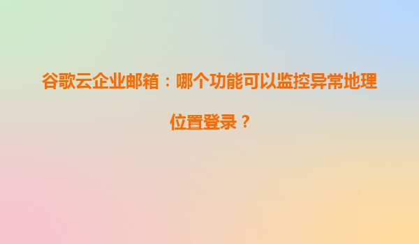 2025-04-20谷歌云企業(yè)郵箱:如何通過「安全檢測中心」監(jiān)控異常地理位置登錄? 一、為什么企業(yè)需要監(jiān)控異常地理位置登錄? 在全球化辦公場景中,員工可能通過不同地區(qū)設(shè)備訪問企業(yè)郵箱,但這也給黑客攻擊...