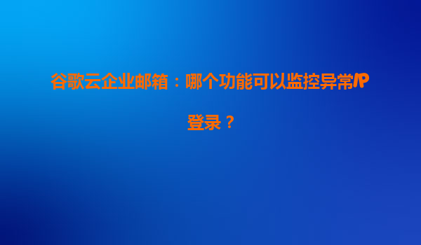 2025-04-19谷歌云企業(yè)郵箱:如何通過安全功能監(jiān)控異常IP登錄? 在當(dāng)今數(shù)字化時代,企業(yè)郵箱的安全性已成為保障商業(yè)機密和用戶隱私的核心環(huán)節(jié)。谷歌云企業(yè)郵箱(GoogleWorkspace)憑借其強...