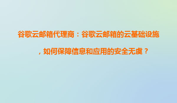 2025-10-30谷歌云郵箱代理商:谷歌云郵箱的云基礎設施如何保障信息和應用的安全無虞? 一、引言 在當今數字化時代,信息安全已成為企業(yè)運營的核心關切。各類企業(yè),無論是中小企業(yè)還是跨國集團,都在尋找可靠、安全的...