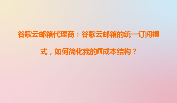 2025-10-29谷歌云郵箱代理商:如何通過統(tǒng)一訂閱模式簡化IT成本結構 谷歌云郵箱與統(tǒng)一訂閱模式的核心價值 谷歌云郵箱(GoogleWorkspace)作為全球領先的云端生產力工具,其統(tǒng)一訂閱模式通過整合郵箱、協(xié)作應用與云存...