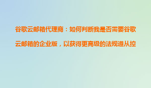 2025-10-30谷歌云郵箱代理商:谷歌云郵箱是否支持與現有的電子郵件解決方案搭配使用? 1.谷歌云郵箱的核心特性 谷歌云郵箱(GmailforBusiness)是谷歌為企業(yè)用戶提供的專業(yè)郵件解決方案,基于Gmail的...