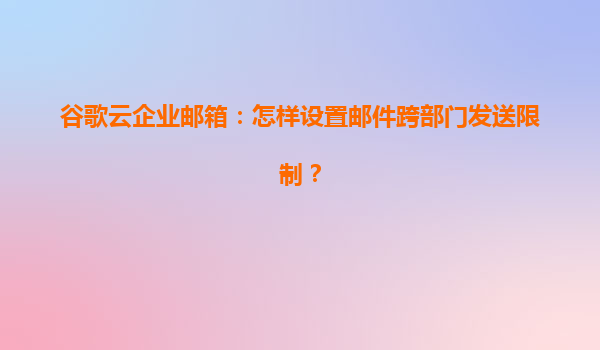 2025-04-19谷歌云企業(yè)郵箱:如何設(shè)置跨部門郵件發(fā)送限制? 一、為什么需要跨部門郵件發(fā)送限制? 在企業(yè)日常運營中,不同部門可能涉及敏感數(shù)據(jù)或獨立業(yè)務流程。通過設(shè)置郵件發(fā)送限制,可以避免以下問題: ...