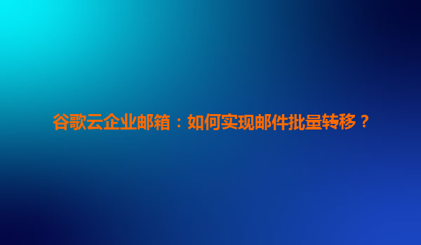 2025-04-18谷歌云企業(yè)郵箱:如何實現(xiàn)郵件批量轉(zhuǎn)移? 一、為什么需要郵件批量轉(zhuǎn)移? 在企業(yè)運營中,郵件系統(tǒng)是核心溝通工具之一。隨著業(yè)務擴展或組織架構(gòu)調(diào)整,可能需要將大量郵件數(shù)據(jù)從舊平臺遷移到谷歌云企業(yè)郵...