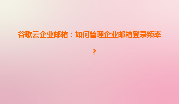 2025-04-17谷歌云企業(yè)郵箱:如何高效管理企業(yè)郵箱登錄頻率 一、企業(yè)郵箱登錄頻率管理的重要性 在數(shù)字化辦公場(chǎng)景中,企業(yè)郵箱承載著核心溝通與數(shù)據(jù)傳遞功能。合理控制登錄頻率不僅能防范未授權(quán)訪問和惡意攻擊,還能優(yōu)...