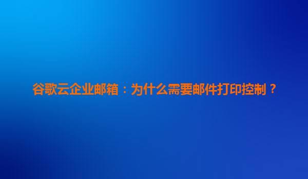 2025-04-15谷歌云企業(yè)郵箱:為什么需要郵件打印控制? 在數(shù)字化辦公日益普及的今天,企業(yè)郵箱已成為信息傳遞的核心工具。然而,隨著數(shù)據(jù)安全與合規(guī)要求的提升,企業(yè)對郵件管理的精細化需求也在增加。其中,郵...