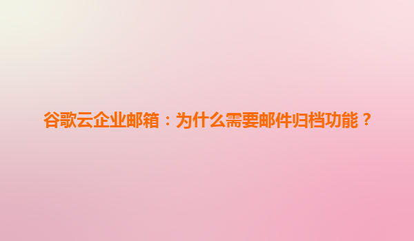 2025-04-09谷歌云企業(yè)郵箱:為什么需要郵件歸檔功能? 一、郵件歸檔是企業(yè)合規(guī)與數(shù)據(jù)管理的剛需 在數(shù)字化辦公時代,電子郵件作為企業(yè)核心溝通工具,承載著合同、交易記錄、客戶信息等重要數(shù)據(jù)。谷歌云企業(yè)郵...