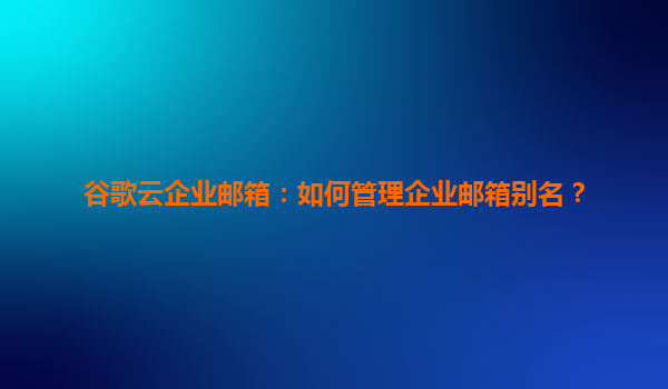 2025-04-09谷歌云企業(yè)郵箱:如何管理企業(yè)郵箱別名? 在數(shù)字化辦公場景中,企業(yè)郵箱別名(EmailAlias)是提升管理效率和靈活性的重要工具。谷歌云企業(yè)郵箱(GoogleWorkspace)通過其強大的...