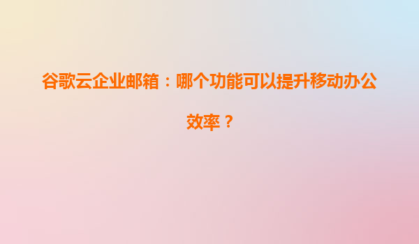 2025-04-09谷歌云企業(yè)郵箱:哪個功能可以提升移動辦公效率? 一、跨平臺無縫同步:打破設備與地域限制 谷歌云企業(yè)郵箱(GoogleWorkspaceGmail)通過原生支持多終端同步,允許用戶在手機、平板、筆記本電腦...