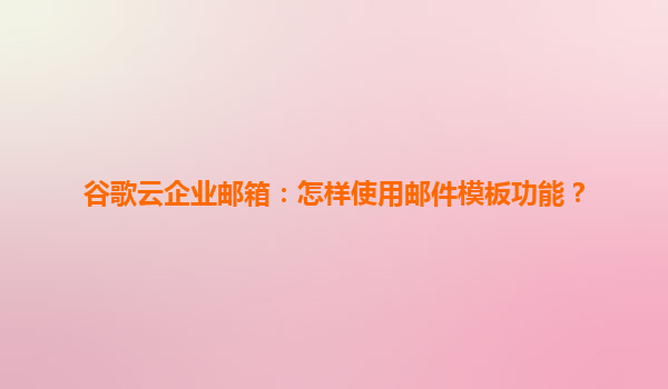 2025-04-07谷歌云企業(yè)郵箱:郵件模板功能使用詳解 一、為什么需要郵件模板功能? 在日常商務(wù)溝通中,重復(fù)性郵件內(nèi)容(如客戶咨詢回復(fù)、訂單確認、會議邀請等)占據(jù)了大量工作時間。谷歌云企業(yè)郵箱(GoogleWorksp...