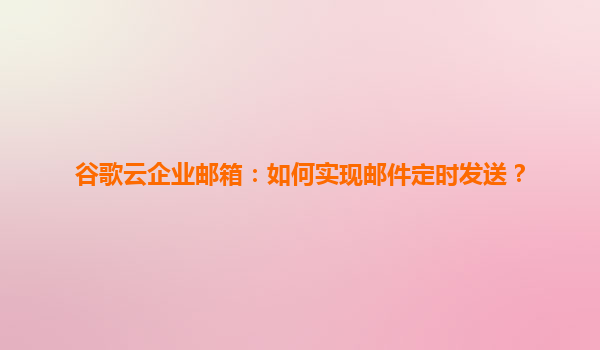 2025-04-06谷歌云企業(yè)郵箱如何實(shí)現(xiàn)郵件定時(shí)發(fā)送 定時(shí)發(fā)送郵件的應(yīng)用場(chǎng)景 在跨國(guó)協(xié)作、跨時(shí)區(qū)溝通或營(yíng)銷活動(dòng)中,定時(shí)發(fā)送郵件能顯著提升工作效率。通過(guò)谷歌云企業(yè)郵箱結(jié)合第三方工具(如GoogleWorkspace...
