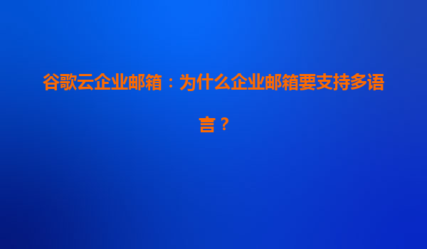 2025-04-06谷歌云企業(yè)郵箱:為什么企業(yè)郵箱要支持多語(yǔ)言? 一、多語(yǔ)言支持對(duì)企業(yè)的重要性 在全球化的商業(yè)環(huán)境中,企業(yè)郵箱不僅是內(nèi)部溝通的工具,更是連接全球客戶與合作伙伴的橋梁。支持多語(yǔ)言的企業(yè)郵箱能夠幫助企...