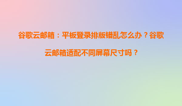 2025-04-03谷歌云郵箱平板登錄排版錯亂解決方案與多屏適配能力解析 一、平板登錄排版錯亂的常見原因及解決方法 1.1常見問題場景 瀏覽器緩存沖突:長期未清理的緩存可能導(dǎo)致...
