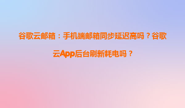 2025-04-03谷歌云郵箱手機(jī)端同步性能與能耗深度解析 一、手機(jī)端郵箱同步延遲問題分析 谷歌云郵箱(Gmail)基于全球分布式服務(wù)器架構(gòu),采用即時推送技術(shù)(PushNotification),在網(wǎng)絡(luò)環(huán)境穩(wěn)定的情...
