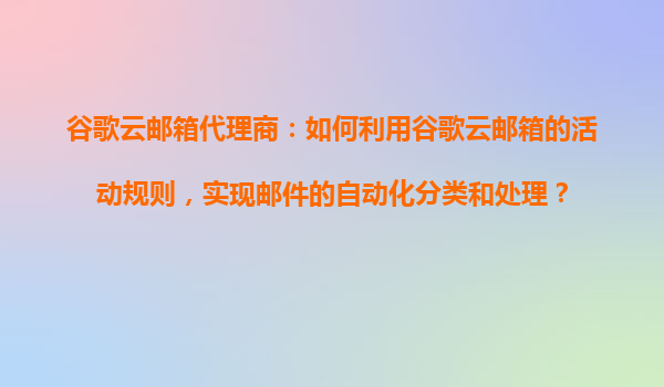 2025-10-29谷歌云郵箱代理商:如何利用谷歌云郵箱的活動規(guī)則,實(shí)現(xiàn)郵件的自動化分類和處理? 一、谷歌云郵箱的活動規(guī)則簡介 谷歌云郵箱(GoogleWorkspace中的Gmail)提供了強(qiáng)大的...