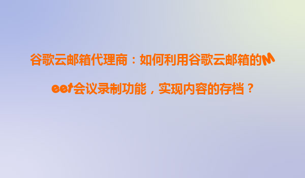 4008-020-360 谷歌云郵箱代理商:如何利用谷歌云郵箱的Meet會議錄制功能,實(shí)現(xiàn)內(nèi)容的存檔? 一、谷歌云郵箱與Meet會議的核心優(yōu)勢分析 谷歌云郵箱(GoogleWorkspace)作為企業(yè)級協(xié)作平臺,集成了Gmail、Cale...