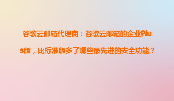 2025-10-29谷歌云郵箱代理商:企業(yè)Plus版安全功能全面升級 谷歌云郵箱作為全球領(lǐng)先的企業(yè)郵箱服務(wù),其企業(yè)Plus版在標(biāo)準(zhǔn)版基礎(chǔ)上,針對高端客戶提供了多層次的安全增強(qiáng)功能。以下詳細(xì)解析這些先進(jìn)特性及其對企業(yè)用戶的實(shí)際價值...