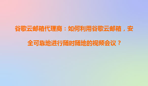 2025-10-29谷歌云郵箱代理商:安全可靠實(shí)現(xiàn)隨時隨地視頻會議 谷歌云郵箱與視頻會議的集成優(yōu)勢 作為谷歌云郵箱代理商,我們深刻理解現(xiàn)代企業(yè)對高效協(xié)作工具的需求。谷歌云郵箱(Gmail)與GoogleMeet的無縫集成,為用...