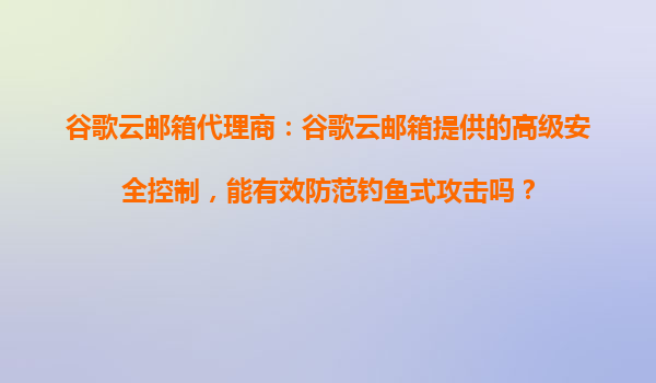 2025-10-28谷歌云郵箱代理商:谷歌云郵箱提供的高級安全控制,能有效防范釣魚式攻擊嗎? 引言 在當(dāng)今數(shù)字化時代,電子郵件已成為企業(yè)和個人日常溝通的重要工具。然而,隨...