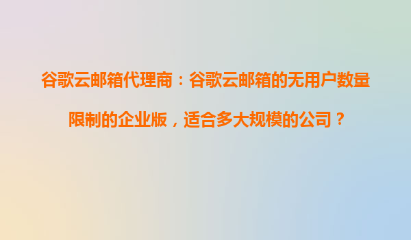 4008-020-360 谷歌云郵箱代理商:谷歌云郵箱無用戶數(shù)量限制的企業(yè)版,適合多大規(guī)模的公司? 引言 隨著企業(yè)數(shù)字化轉(zhuǎn)型的加速,電子郵件已成為現(xiàn)代企業(yè)不可或缺的溝通工具。谷歌云郵箱(GoogleWork...