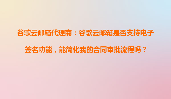 2025-10-28谷歌云郵箱代理商解析:電子簽名功能如何助力合同審批流程 谷歌云郵箱的電子簽名功能概述 谷歌云郵箱作為企業(yè)級郵件服務(wù)的重要組成部分,其內(nèi)置的電子簽名功能為用戶提供了高效、安全的文檔簽署解決方案。通...