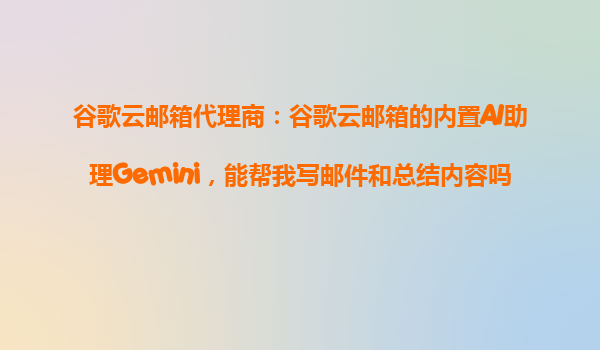 2025-10-27谷歌云郵箱代理商解析:內(nèi)置AI助理Gemini的郵件撰寫與內(nèi)容總結(jié)能力 一、谷歌云郵箱的AI革新:Gemini助理的核心功能 谷歌云郵箱(Gmail)作為全球領(lǐng)先的企業(yè)級郵件服務(wù),近年來通過整合GoogleAI技術(shù),...