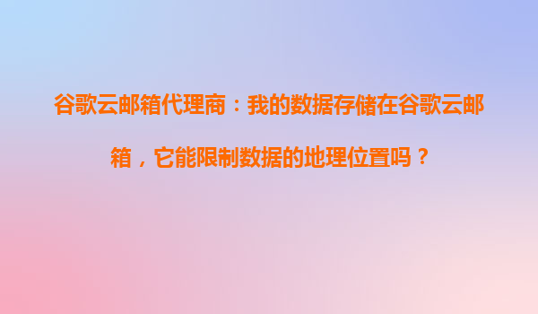 2025-10-28谷歌云郵箱代理商:我的數(shù)據(jù)存儲在谷歌云郵箱,它能限制數(shù)據(jù)的地理位置嗎? 引言 隨著數(shù)據(jù)隱私法規(guī)日益嚴(yán)格(如GDPR、CCPA),企業(yè)對數(shù)據(jù)存儲地理位置的要求越來越高。谷歌云郵箱(GoogleWor...