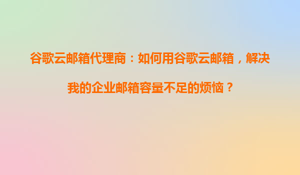 2025-10-26谷歌云郵箱代理商:如何用谷歌云郵箱解決企業(yè)郵箱容量不足的煩惱 企業(yè)郵箱容量不足的痛點(diǎn) 對(duì)于現(xiàn)代企業(yè)而言,電子郵件是日常溝通和信息存儲(chǔ)的核心工具。然而,隨著業(yè)務(wù)的發(fā)展和數(shù)據(jù)的積累,許多企...