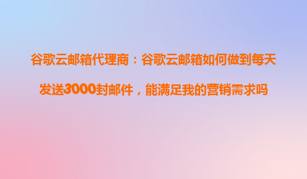 2025-10-27谷歌云郵箱代理商:谷歌云郵箱如何做到每天發(fā)送3000封郵件,能滿足我的營(yíng)銷需求嗎? 引言 在數(shù)字化營(yíng)銷時(shí)代,電子郵件營(yíng)銷仍然是企業(yè)推廣產(chǎn)品和服務(wù)的重要手段。然而,如何在遵守反垃圾郵件規(guī)則的...