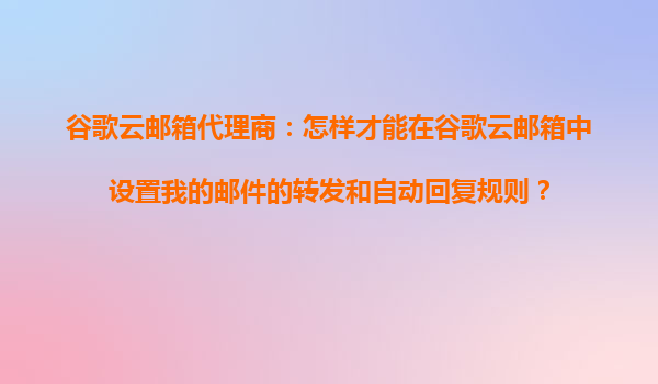 2025-10-25谷歌云郵箱代理商:高效郵件管理指南 作為現(xiàn)代企業(yè)溝通的核心工具,電子郵件的高效管理直接關(guān)系到工作效率。谷歌云郵箱(GmailforBusiness)因其強(qiáng)大的功能、穩(wěn)定的性能和靈活的定制性,成為眾多企業(yè)的首選。本文...