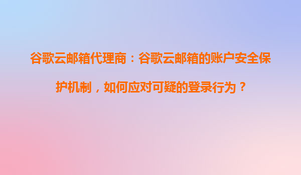 2025-10-25谷歌云郵箱代理商:谷歌云郵箱的賬戶安全保護(hù)機(jī)制如何應(yīng)對可疑的登錄行為 引言 在數(shù)字化時代,電子郵件已成為企業(yè)和個人溝通的重要工具。谷歌云郵箱(Gmail)作為全球領(lǐng)先的電子郵件服務(wù)之一,憑借其強(qiáng)大的安...