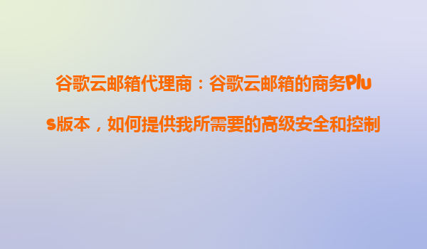 2025-10-25谷歌云郵箱商務(wù)Plus版本的高級安全與控制功能解析 為何選擇谷歌云郵箱商務(wù)Plus版? 谷歌云郵箱商務(wù)Plus版本專為中大型企業(yè)設(shè)計(jì),提供比標(biāo)準(zhǔn)版更強(qiáng)大的安全策略、管理工具和數(shù)據(jù)保護(hù)能力。其核心優(yōu)勢在于將...