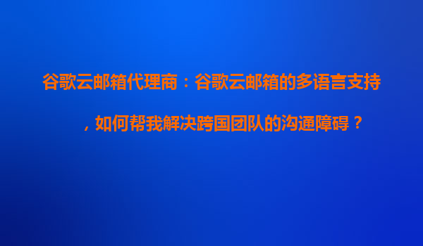 2025-10-25谷歌云郵箱代理商:谷歌云郵箱的多語言支持,如何幫我解決跨國團(tuán)隊(duì)的溝通障礙? 在國際化的商業(yè)環(huán)境中,跨國團(tuán)隊(duì)協(xié)作已成為常態(tài)。然而,語言差異、時區(qū)障礙以及信息同步問題往往成為團(tuán)隊(duì)高效溝通的絆腳石。谷歌云...