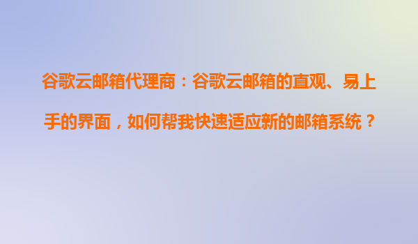 2025-10-23谷歌云郵箱代理商:如何借助谷歌云郵箱的直觀界面快速適應(yīng)新系統(tǒng) 一、谷歌云郵箱的界面設(shè)計(jì)優(yōu)勢 谷歌云郵箱以其簡潔、直觀的界面設(shè)計(jì)著稱,用戶首次登錄即可輕松上手。其布局采用三欄式結(jié)構(gòu):左側(cè)為導(dǎo)航欄...