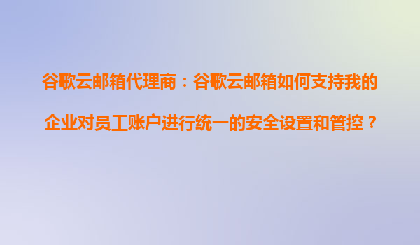 2025-10-23谷歌云郵箱代理商:谷歌云郵箱如何支持企業(yè)對員工賬戶進(jìn)行統(tǒng)一安全設(shè)置與管控 一、企業(yè)郵箱管理的核心挑戰(zhàn) 在數(shù)字化辦公場景中,企業(yè)郵箱不僅是溝通工具,更是數(shù)據(jù)安全的要塞。分散的賬戶管理...