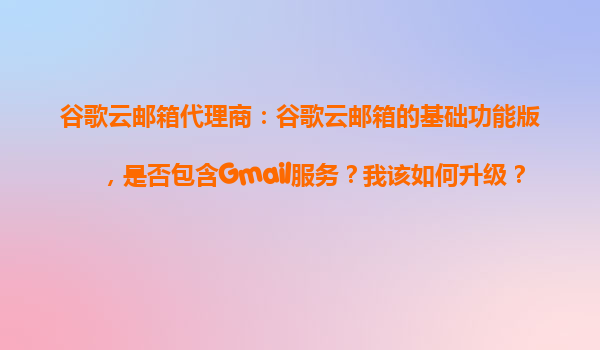 2025-10-23谷歌云郵箱代理商:全面解析Gmail基礎(chǔ)服務(wù)與升級策略 一、谷歌云郵箱基礎(chǔ)功能版是否包含Gmail服務(wù)? 谷歌云郵箱(GoogleWorkspace)的基礎(chǔ)功能版完全包含Gmail核心服務(wù),但功能可能存在限制。以下是...