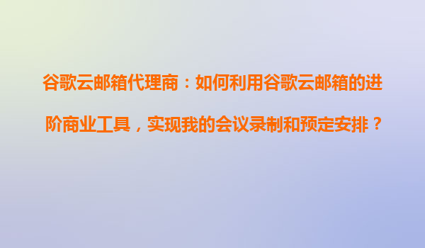 2025-10-23谷歌云郵箱代理商:如何利用谷歌云郵箱的進(jìn)階商業(yè)工具實(shí)現(xiàn)會議錄制和預(yù)定安排 一、谷歌云郵箱的商業(yè)優(yōu)勢 谷歌云郵箱(GmailforBusiness)作為企業(yè)級郵件解決方案,整合...