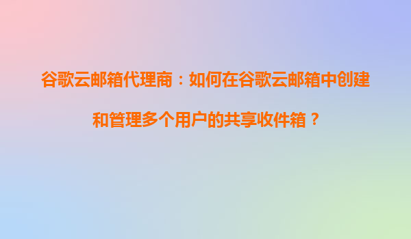 2025-10-21谷歌云郵箱代理商指南:高效創(chuàng)建與管理共享收件箱 作為企業(yè)級(jí)電子郵件解決方案,谷歌云郵箱(GoogleWorkspace)憑借其卓越的協(xié)作功能與靈活性,成為全球眾多企業(yè)的首選。本文將詳細(xì)介紹如何在谷歌云郵箱中創(chuàng)建...