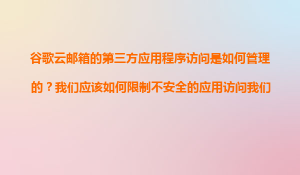 2025-11-09谷歌云郵箱第三方應(yīng)用程序訪問管理及安全策略 1.谷歌云郵箱第三方應(yīng)用程序訪問機制 谷歌云郵箱(Gmail)通過OAuth2.0協(xié)議授權(quán)第三方應(yīng)用程序訪問用戶數(shù)據(jù),確保權(quán)限可控且安全性高。第...