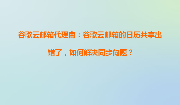 2025-10-20谷歌云郵箱代理商:如何解決谷歌云郵箱日歷共享同步問題? 引言 谷歌云郵箱(Gmail)作為全球領(lǐng)先的企業(yè)級郵箱服務(wù),憑借其強(qiáng)大的功能和高度的可靠性,成為眾多企業(yè)的首選。然而,在...