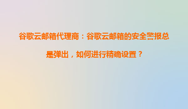 2025-10-20谷歌云郵箱代理商指南:如何精準(zhǔn)設(shè)置安全警報避免頻繁彈窗? 一、谷歌云郵箱安全警報的作用與痛點(diǎn) 谷歌云郵箱(GoogleWorkspace)內(nèi)置的安全警報系統(tǒng)通過實時...