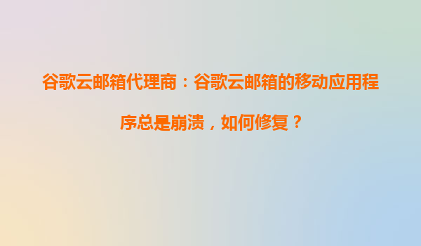 2025-10-20谷歌云郵箱代理商支招:如何解決谷歌云郵箱移動應(yīng)用崩潰問題? 一、問題背景:為什么谷歌云郵箱App會崩潰? 谷歌云郵箱(GSuite/Gmail)作為企業(yè)級郵件服務(wù),其移動應(yīng)...