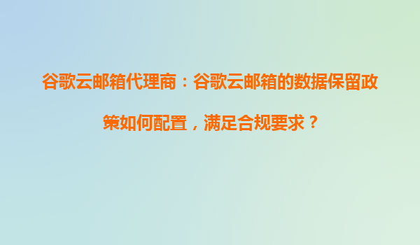 2025-10-19谷歌云郵箱代理商指南:如何配置數(shù)據(jù)保留政策以滿足合規(guī)要求 引言 隨著全球數(shù)據(jù)保護(hù)法規(guī)的日益嚴(yán)格(如GDPR、CCPA等),企業(yè)需要確保其云端郵箱系統(tǒng)的數(shù)據(jù)管理符合合規(guī)要求。谷歌云郵箱(...