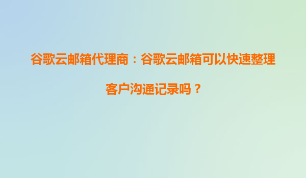 2025-10-15谷歌云郵箱代理商分析:如何用谷歌云郵箱高效整理客戶溝通記錄? 為什么需要高效整理客戶溝通記錄? 在現(xiàn)代商業(yè)環(huán)境中,客戶溝通記錄的整理不僅關(guān)系到工作效率,更是企...