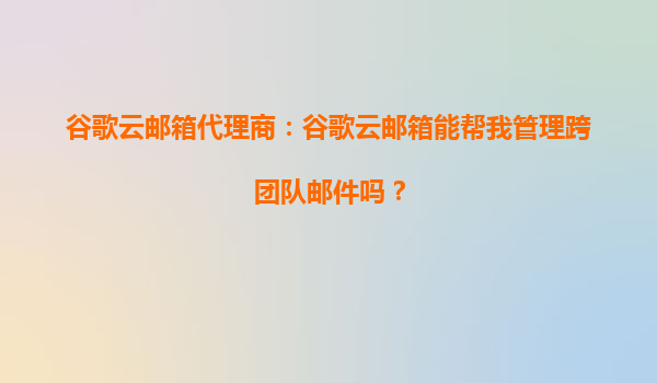 2025-10-15谷歌云郵箱代理商:谷歌云郵箱能幫我管理跨團(tuán)隊(duì)郵件嗎? 一、谷歌云郵箱的跨團(tuán)隊(duì)郵件管理能力解析 谷歌云郵箱(GmailforBusiness)作為企業(yè)級(jí)郵箱解決方案,依托谷歌強(qiáng)大的云計(jì)算基礎(chǔ)設(shè)施,提供...